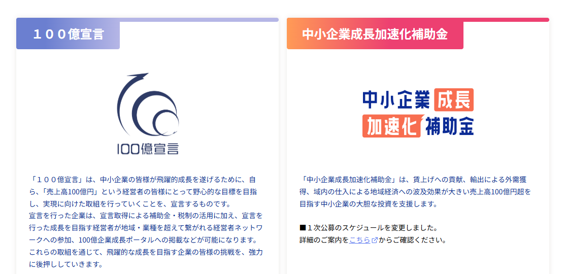 ポータルサイト(令和7年春頃開設予定)上に「売上高100億円を超える企業になること」、「それに向けたビジョンや取組」を自ら宣言し、公表をするものです。